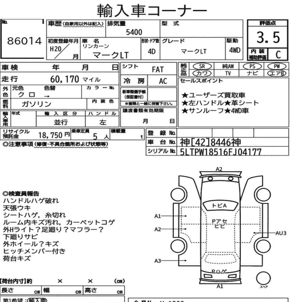 pa_mileage icon61.000pa_location iconYokohamapa_capacity icon5400lot icon86014pa_rank icon3.5pa_gearbox iconAT