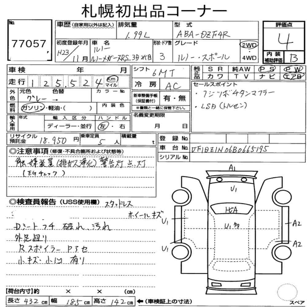 pa_mileage icon126.000pa_location iconSapporopa_capacity icon2000lot icon77057pa_rank icon4pa_gearbox icon6