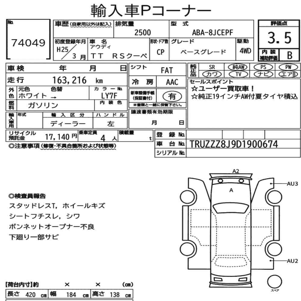 pa_mileage icon164.000pa_location iconSapporopa_capacity icon2500lot icon74049pa_rank icon3.5pa_gearbox iconAT