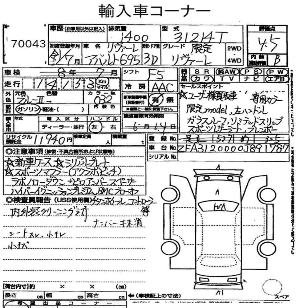 pa_mileage icon15.000pa_location iconTokyopa_capacity icon1400lot icon70043pa_rank icon4.5pa_gearbox iconMT