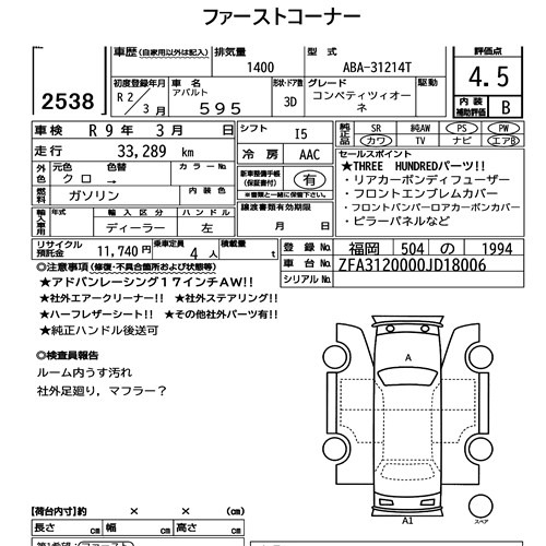 pa_mileage icon34.000pa_location iconFukuokapa_capacity icon1400lot icon2538pa_rank icon4.5pa_gearbox iconMT